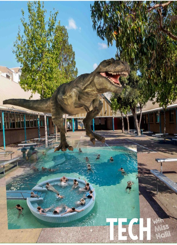 We decided to use this for our project for the Art and Film Festival at the end of the year. Our entry won the competition as students were amazed with images of dinosaurs in the playground and more. We then continued to use this app for a project our principal gave to the whole school, which was to design our new playground. You can see some of the images students put together.